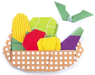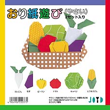 折り紙遊び(やさい) やさい柄+かご柄の折り紙 折り方 折り紙遊び(やさい) 大きな折り紙(30cm×30cm)を折れば、やさいのかごになり、立たせます。各やさいを折って、かごに入れれば出来上がり。やさい柄の折り紙と、かごは2セットづつ入っています。 ● やさい柄の折り紙6種類×2セット/かごの折り紙2枚/おりかた7種類/折り紙サイズ15cm×15cm<小売価格220円>